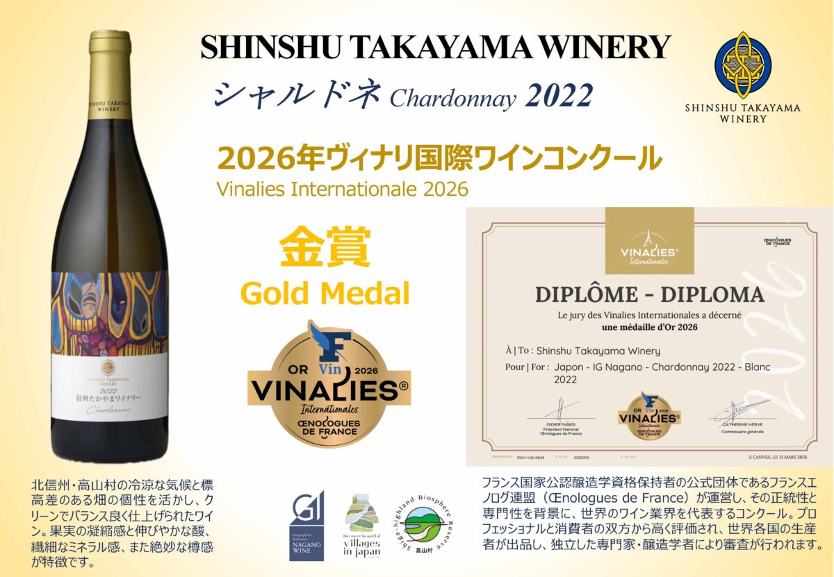 2026.04.10|長野県高山村【長野県高山村】ヴィナリ国際ワインコンクール2026において《シャルドネ2022》が金賞受賞