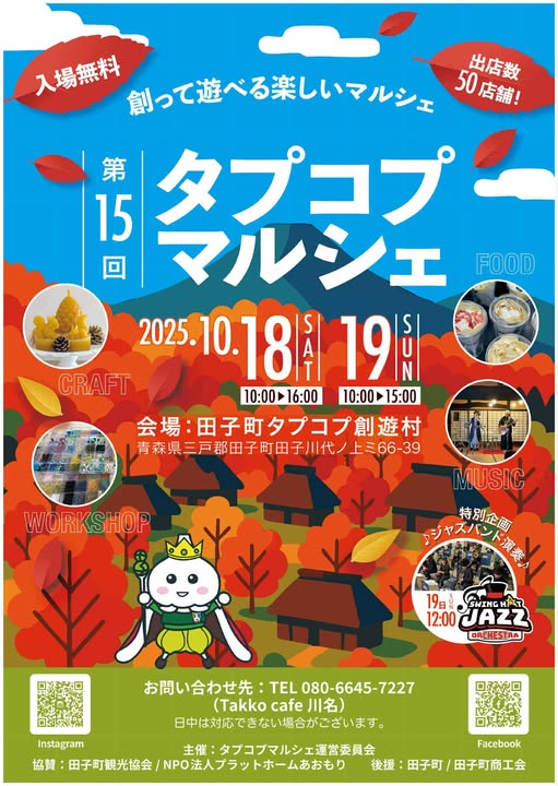 2025年10月18日~19日に田子町タプコプ創遊村にて開催される「第15回タプコプマルシェ」に、
